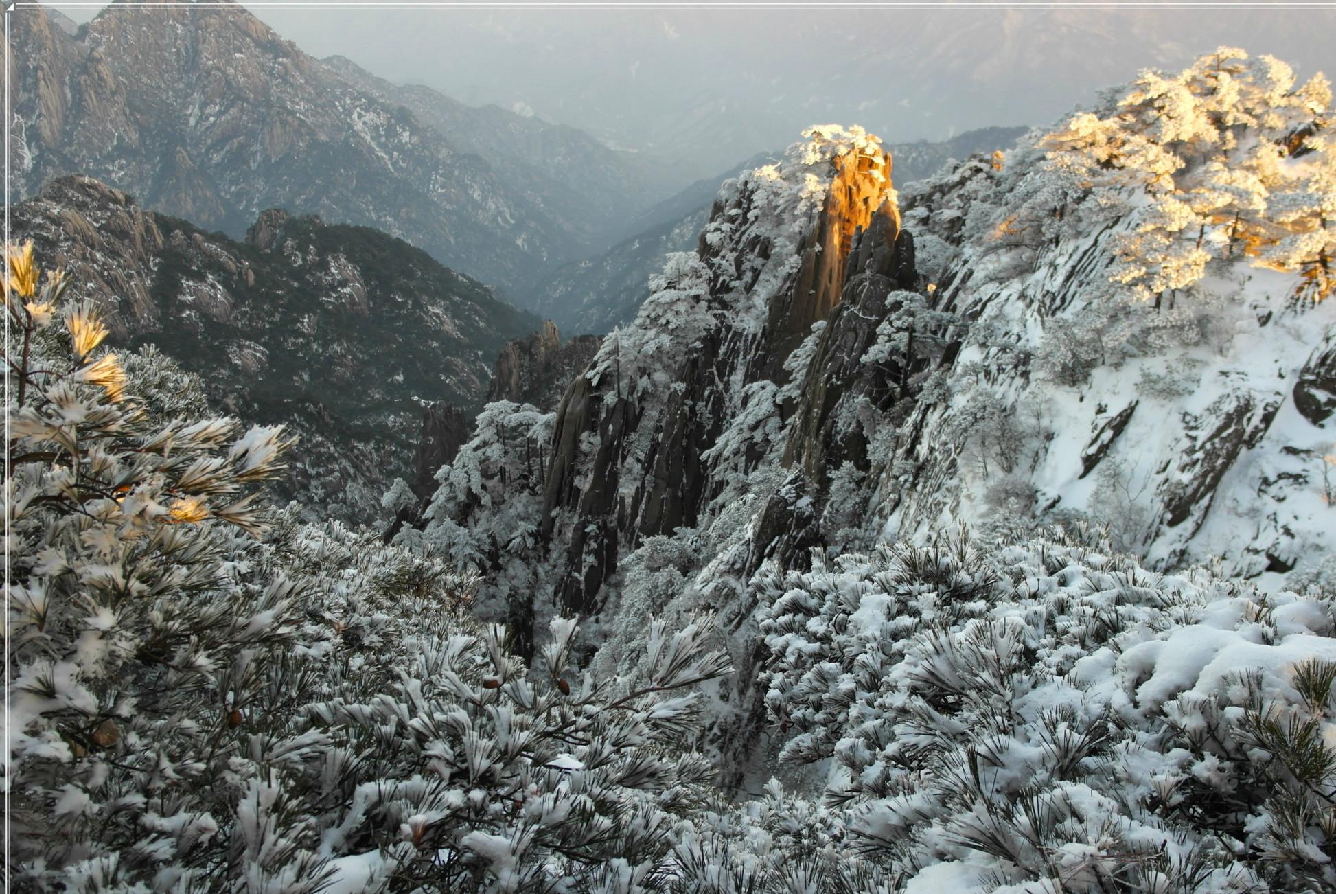 只有一条太平索道能够上山。黄山原名“黟山”,因峰岩青黑,遥望苍黛而名,后因传说轩辕黄帝曾在此炼丹,故改名为“黄山”。黄山有72峰,主峰莲花峰海拔1864米,与光明顶、天都峰并称三大黄山主峰,为36大峰之一。代表景观有“五绝三瀑”,五绝:奇松、怪石、云海、温泉、冬雪;三瀑:人字瀑、百丈泉、九龙瀑。黄山迎客松是安徽人民热情友好的象征,承载着拥抱世界的东方礼仪文化。明朝旅行家徐霞客登临黄山时赞叹:“薄海内外之名山,无如徽之黄山。登黄山,天下无山,观止矣!”被后人引申为“五岳归来不看山,黄山归来不看岳”。