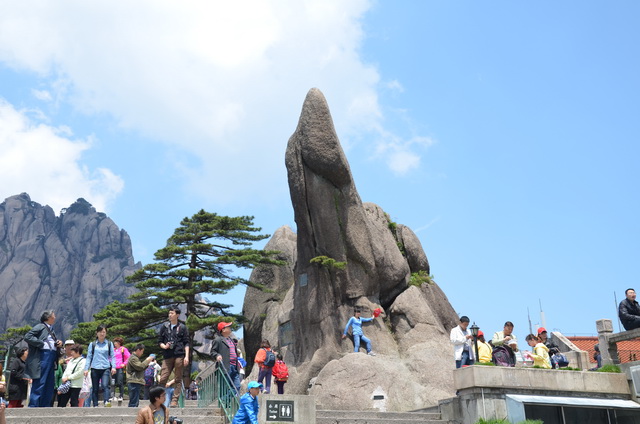 2、怪石:黄山已被命名的怪石有120多处,其形态各异。黄山怪石从不同的位置,在不同的天气观看,可谓“横看成岭侧成峰,远近高低各不同”。