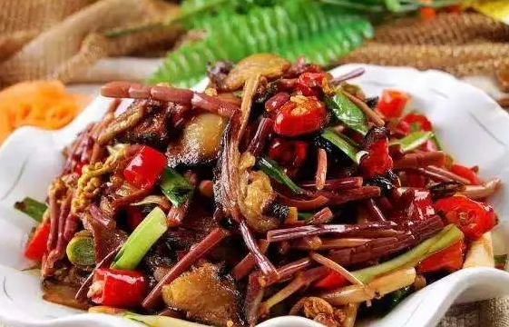 五、黄山蕨菜黄山蕨菜长在山区的草坡、林间空地和林缘地带,是黄山有名的山菜;可以做菜,有食疗的作用;营养非常丰富,含有大量的胡萝卜素、维生素C;被称为“山菜之王”。
