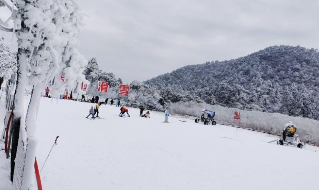 庐山滑雪场目前是九江首家高山滑雪场,也是九江唯一一家高山滑雪场。一期总面积达38000㎡,建有滑雪初级道1条、学习道1条、中级道1条以及加拿大雪上飞雪圈道1条,自然降雪加上物理造雪,成为华东地区冬季滑雪度假旅游胜地。
