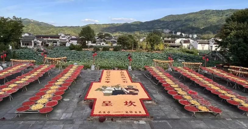 1.徽州古城、2.阳产土楼、3.西递、4.宏村、5.呈坎、6.三河古镇、7.李鸿章故居、8.卢村木雕楼、9.龙川胡氏宗祠、10.程氏三宅。