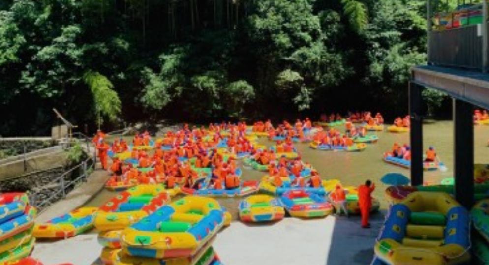 霍山漂流大峡谷攻略:游客中心从取票开始相当于整个漂流活动的起点,然后凭票去拿救生衣,然后排队上景区大四到上码头去,游客中心有一个寄存房间,寄存类似于快递柜。排队上景区公交有三个队伍,建议走到中间队伍,因为每次来超过3频以上大巴车,多的大巴车都会停到中间上车点。公交车开20分钟到上码头,然后在一棵树下拿票排队取号,取了号终于到了漂流起点。要求是6人一船,不够的现场自己组队,5人也可以开。